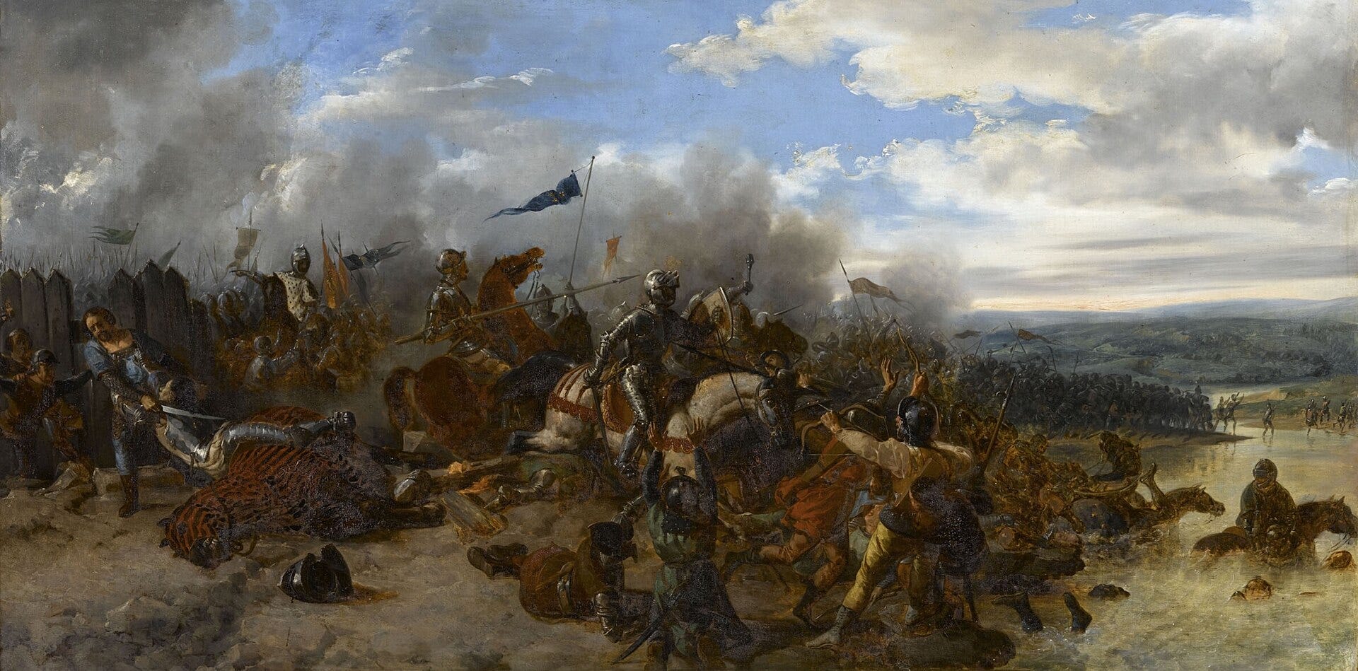 April 15, 1450: In one of the final engagements of the Hundred Years’ War, a French army under Jean de Clermont nearly annihilates an English force commanded by Sir Thomas Kyriell at the Battle of Formigny, in Normandy. The loss of an entire field army left England unable to defend its remaining holdings in Normandy and the region came under French control in the succeeding months. The battle is notable from a military history perspective as perhaps the first recorded use (by the French) of battlefield artillery in Europe. It’s debatable how effective the guns actually were, but their noise did alert French constable Arthur de Richemont to the battle. The arrival of his ~2000 man army on the field was decisive in turning a likely defeat into an overwhelming French victory.