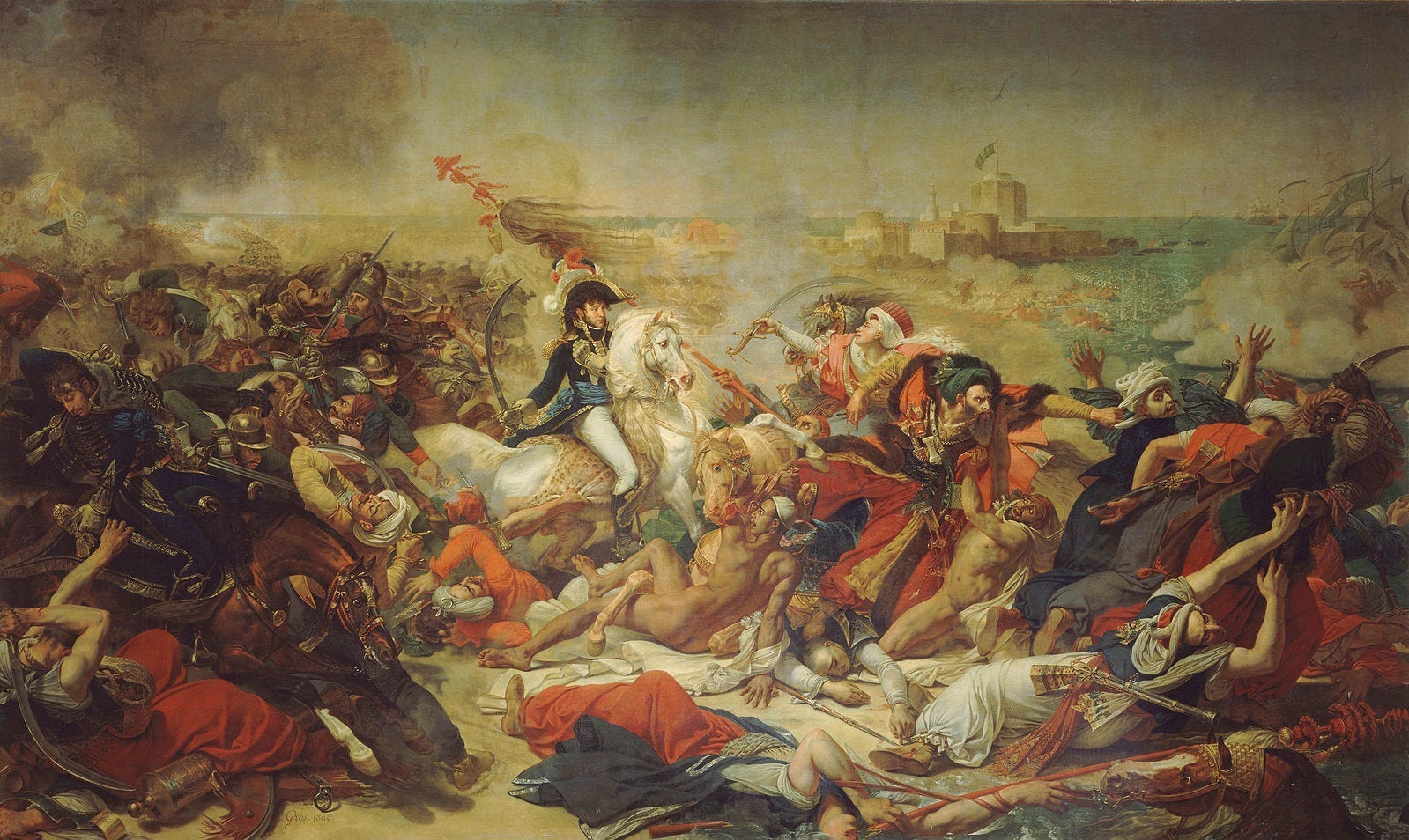 July 25, 1799: In the finale to his big, failed eastern campaign, Napoleon once again defeats an Ottoman-Mamluk army at the Battle of Abukir. The French expedition had stalled out at Acre and political upheaval back in France was demanding his attention. Abukir offered him a chance to declare victory and then slip out of Egypt and head home, while the French occupation of Egypt continued through August 1801 when a British intervention brought it to an end.