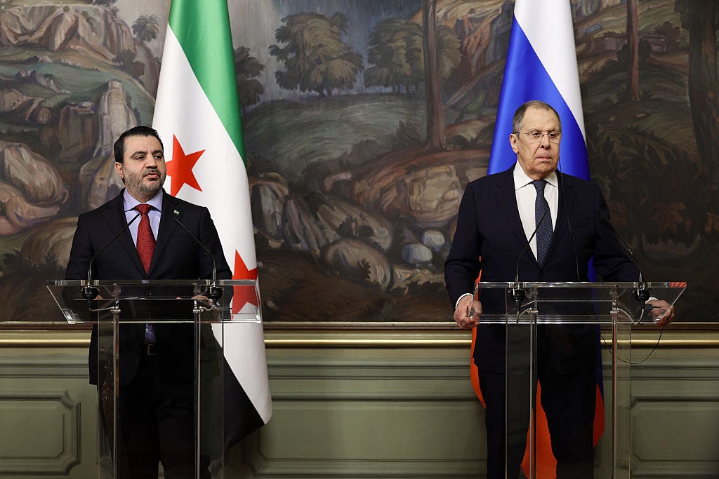 Syrian Foreign Minister Asaad al-Shaibani’s first official visit to Russia appears to have gone smoothly on Thursday, as he and Russian FM Sergey Lavrov expressed their interest in strengthening ties and in reviewing “agreements and contracts concluded under different conditions”—or, in other words, between Moscow and former Syrian leader Bashar al-Assad. They apparently did not come to any definitive decision about the status of the two Syrian military bases that the Russian military has leased until 2066 in agreements that were definitely “concluded under different conditions.” But one assumes they’re working up to that. A Syrian government that seems desperate to curry favor with the West may be somewhat constrained in its Russia policy.
