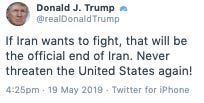 This is an old man yelling at his TV, and just because this particular old man is the president of the United States it doesn’t necessarily make it any more serious than that. Recall that Trump threatened to nuke North Korea a few months before he was palling around with Kim Jong-un in Singapore, and then take a deep breath.